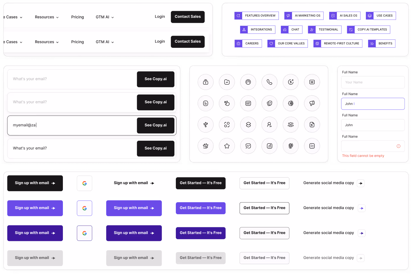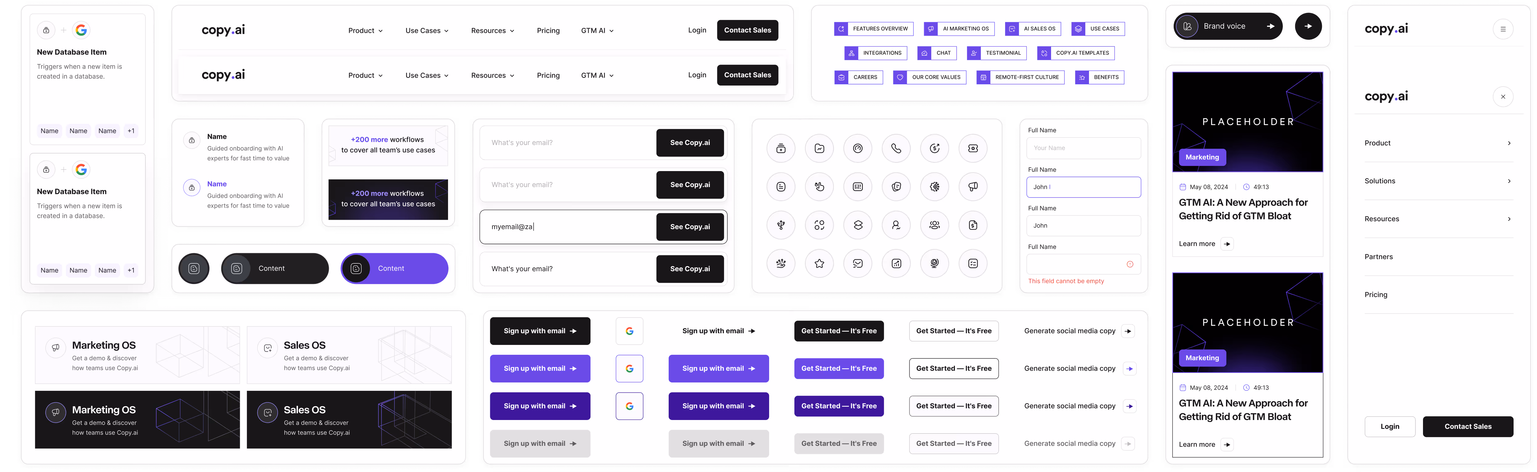 Throughout the two-year collaboration, Zabal guided Copy.ai through two major design evolutions. The first refined their existing visual identity with updated typography and colors, while the second—a 2024 rebrand—marked a bold step toward a more enterprise-ready brand expression.